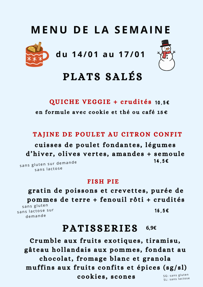 You can order your meals, pastries, and drinks by phone and pick them up during the restaurant’s opening hours. This week’s cakes are available whole (serves 6 to 8).
